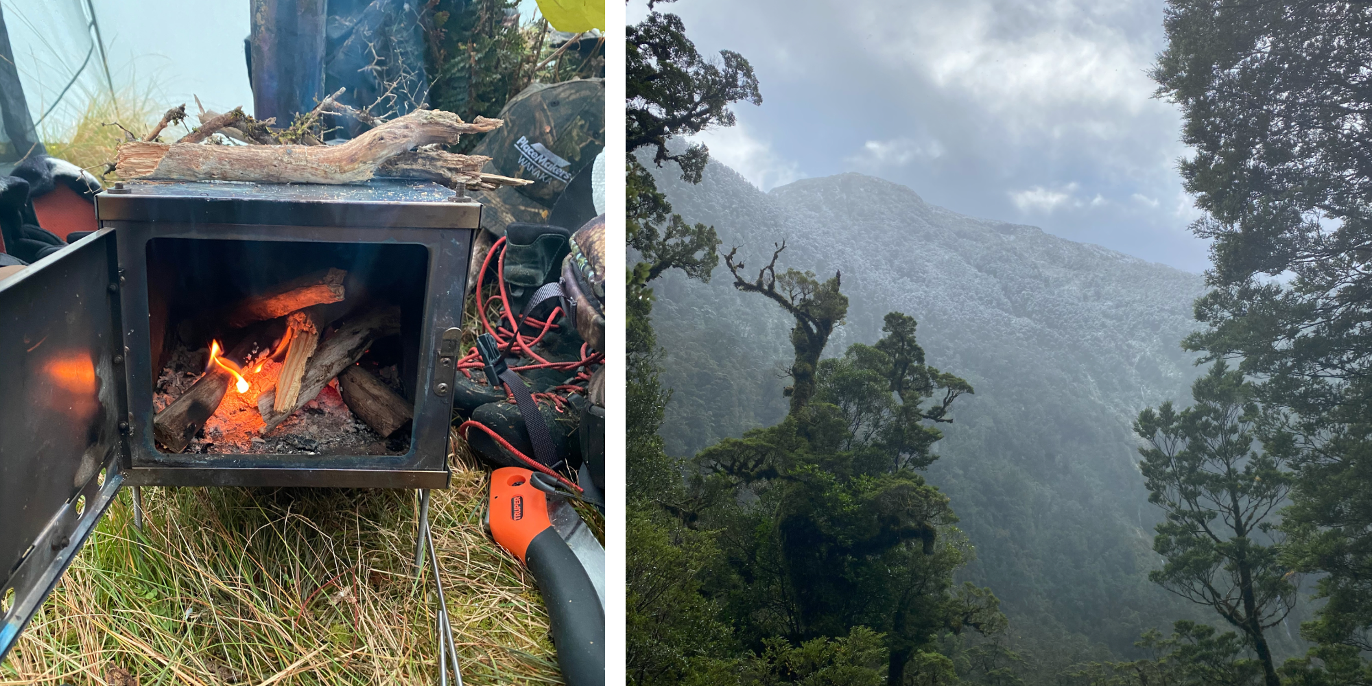 Our plan was to head around the true right of the pond in the bushline and see if there was anything in there. It was meant to be a clear day, so we were keen to dry some gear.